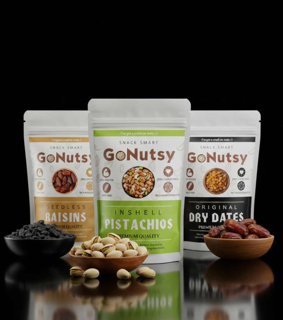 GoNutsy Sweet & Savory Energy Trio – Premium Raisins, Pistachios & Dry Dates